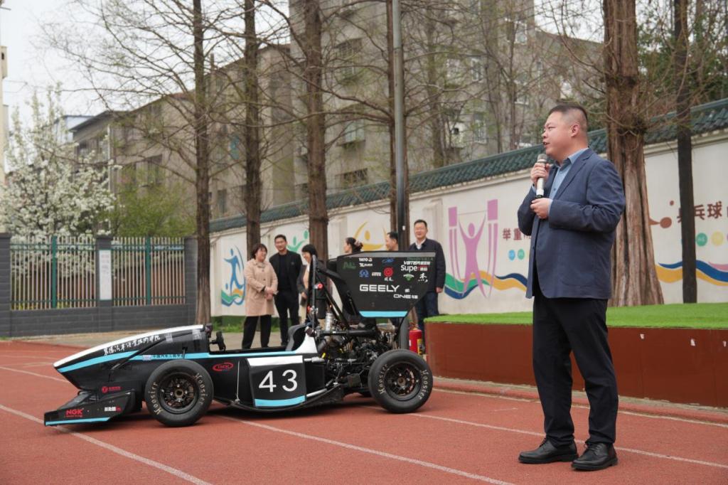 活动现场氛围热烈浓厚、暖意融融,殷兴吉围绕本次专题科普宣讲活动详细介绍了大学生方程式大赛赛事发展历程,深入解说了赛车的设计理念、独特优势及整体构造,并用通俗易懂、生动有趣的语言,逐一拆解每个零件的功能,清晰阐释其在赛车运行中所扮演的关键角色。同时,鼓励同学们大胆放飞想象力,以画笔、手工等多元形式,描绘心中的绿色出行蓝图,在创意创作中锤炼动手能力、厚植环保理念,让汽车科技的种子在青少年心中生根、发芽、茁壮成长。襄阳汽车职业技术学院梦启车队与巴哈车队带来的赛车动态展示,将活动氛围推向高潮——炫酷的赛车外形、流畅的操作演示,每一个精彩瞬间都引得同学们阵阵欢呼、驻足围观,让大家直观感受汽车工程的科技感与趣味性,进一步点燃了对汽车科技的探索热情与求知欲望。